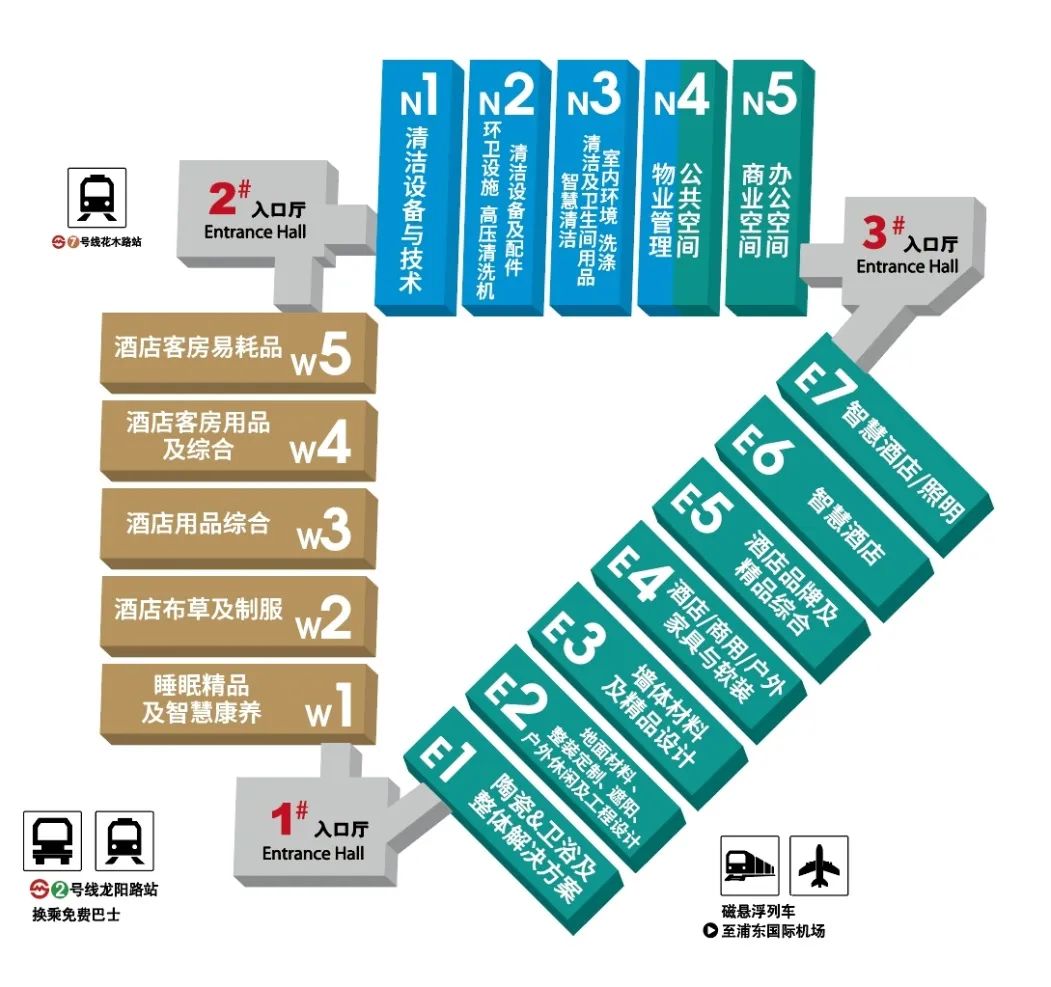 展会依据产品类别、品牌定位以及目标客户群体,对各个展区进行了更为细致和科学的划分。将不同领域的展商分别集中展示,E系列馆集中展示建材及科技类,W馆聚焦酒店洗护及入住体验,N馆则呈现清洁物业及商业、办公、公共空间品类;同时,酒店用品馆2026将扩容,无论是大型酒店集团还是小型精品酒店,都能在更大的资源范围内找到满足自身需求的产品和服务。