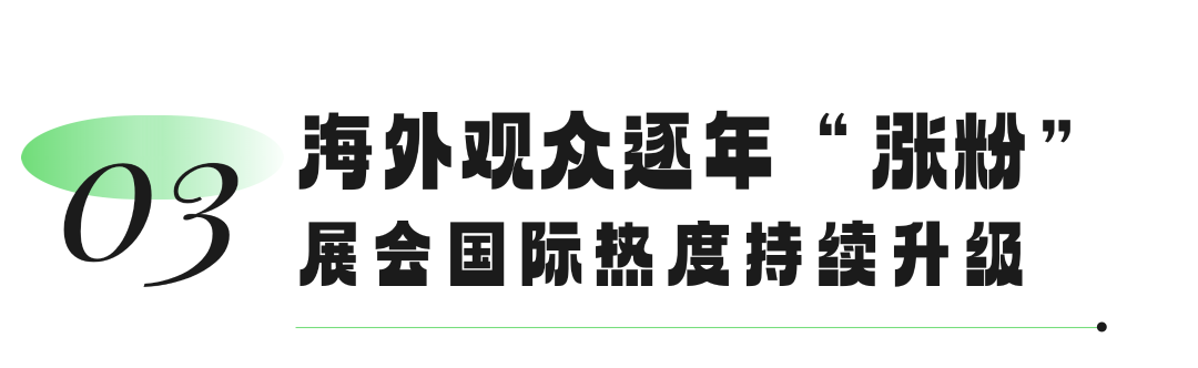 近年,展会在国际舞台上的影响力与日俱增,海外观众规模呈现出逐年稳步扩大的良好态势,在2025年展会达到了8,651人。这不仅彰显了展会的强大吸引力,也反映出全球市场对我们展会的高度关注与认可。为进一步拓展国际影响力,明年我们将积极与海外权威媒体达成深度合作,通过多渠道、多形式的宣传推广,吸引更多海外观众奔赴而来!